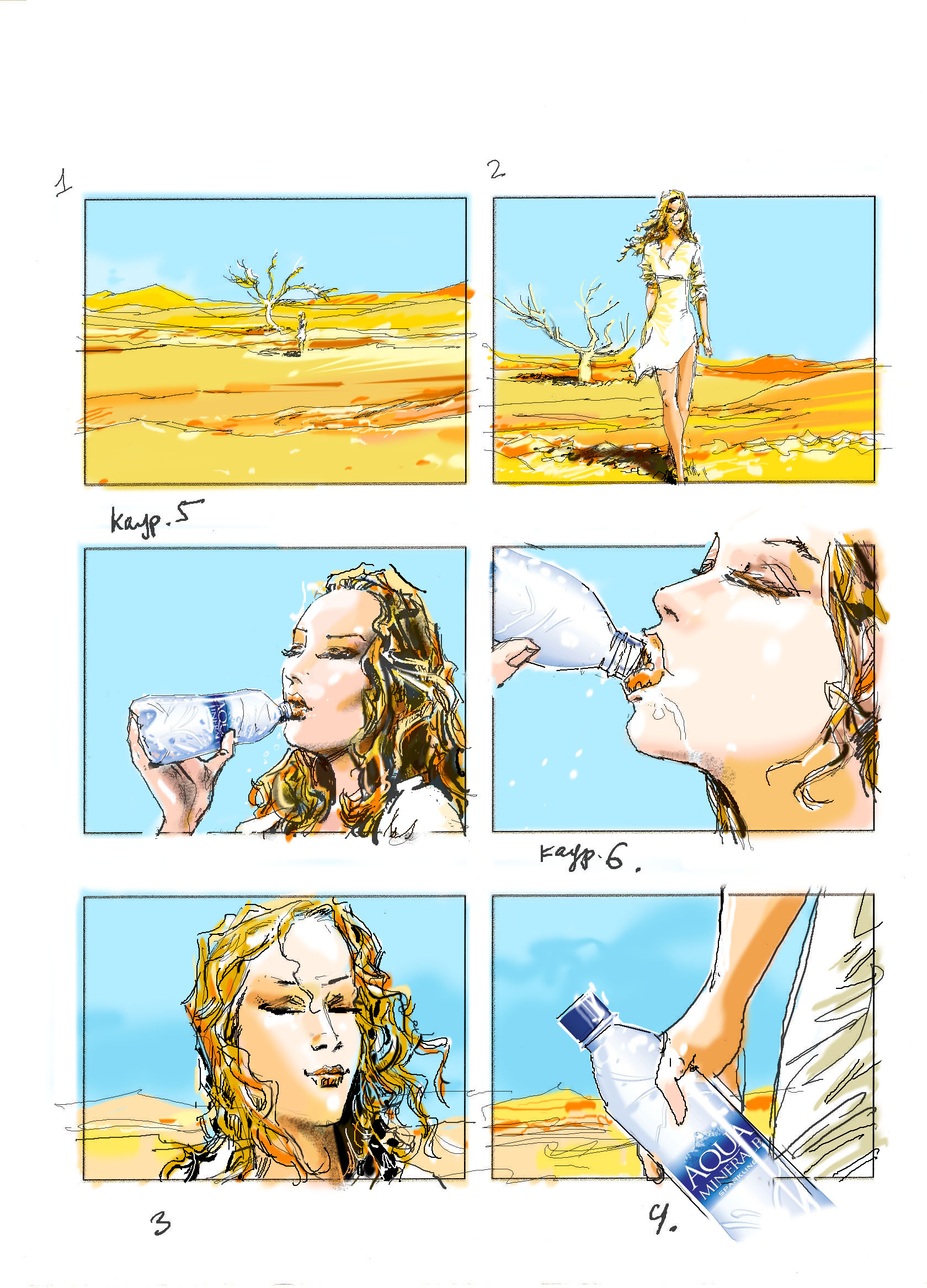 Раскадровка для рекламы Аква